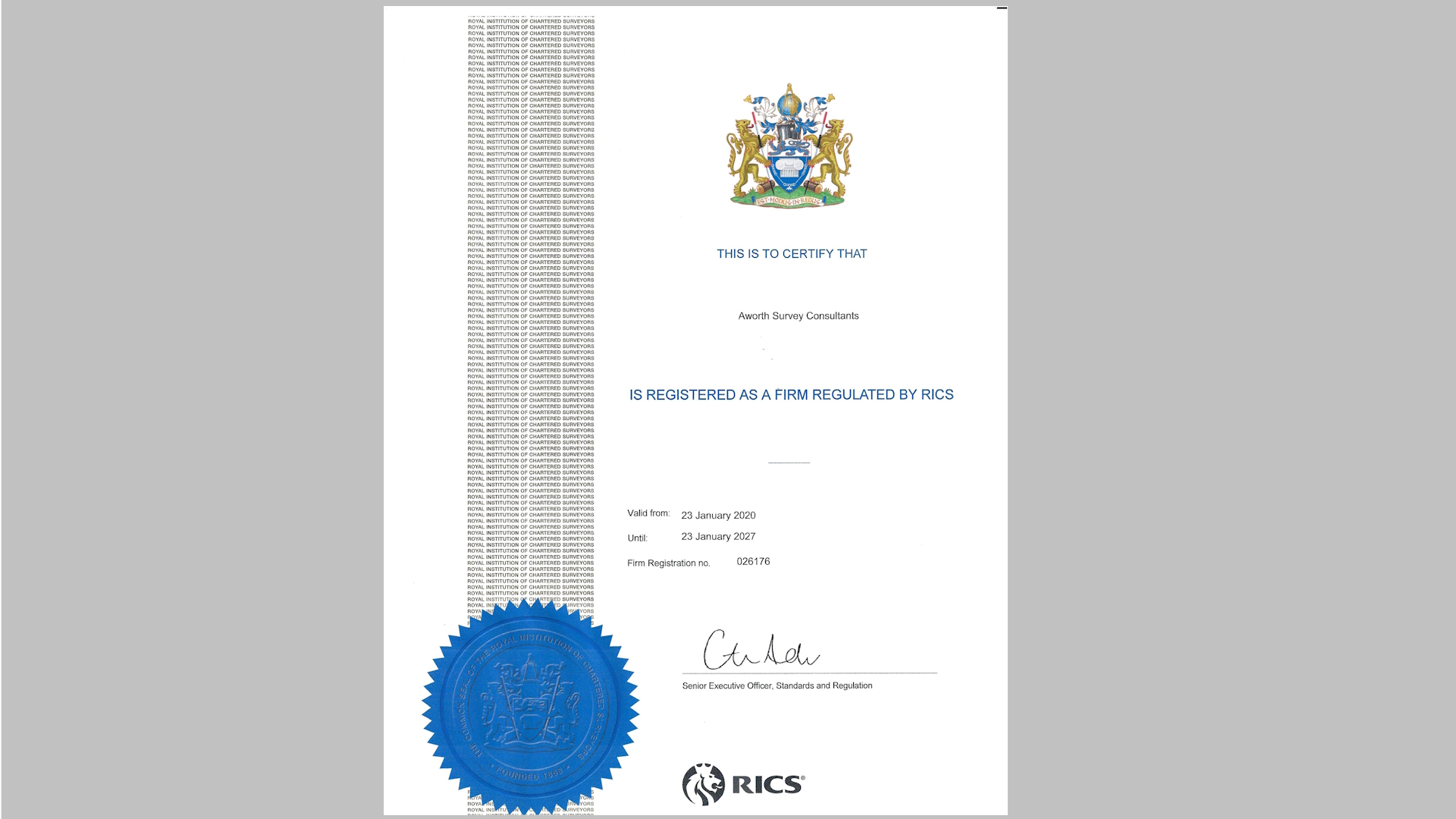 We are proud to announce that Aworth Survey Consultants has officially received our 2026 membership certificate from Royal Institution of Chartered Surveyors (RICS)!